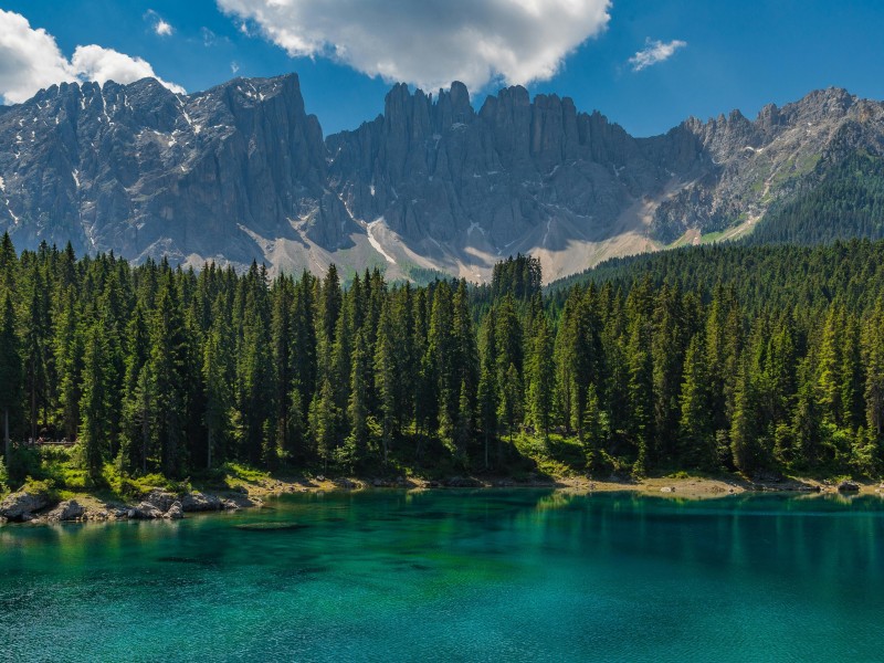 Weiter geht es zum Karersee, auch bekannt als "Regenbogensee" aufgrund seiner smaragdgrünen Farben. Umgeben von dichten Wäldern und hoch aufragenden Bergen ist dieser friedliche See ein Traum für Fotografen. Genießen Sie einen entspannten Spaziergang entlang seiner Ufer, atmen Sie die frische Bergluft ein und bewundern Sie die Spiegelung der umliegenden Gipfel im stillen Wasser.